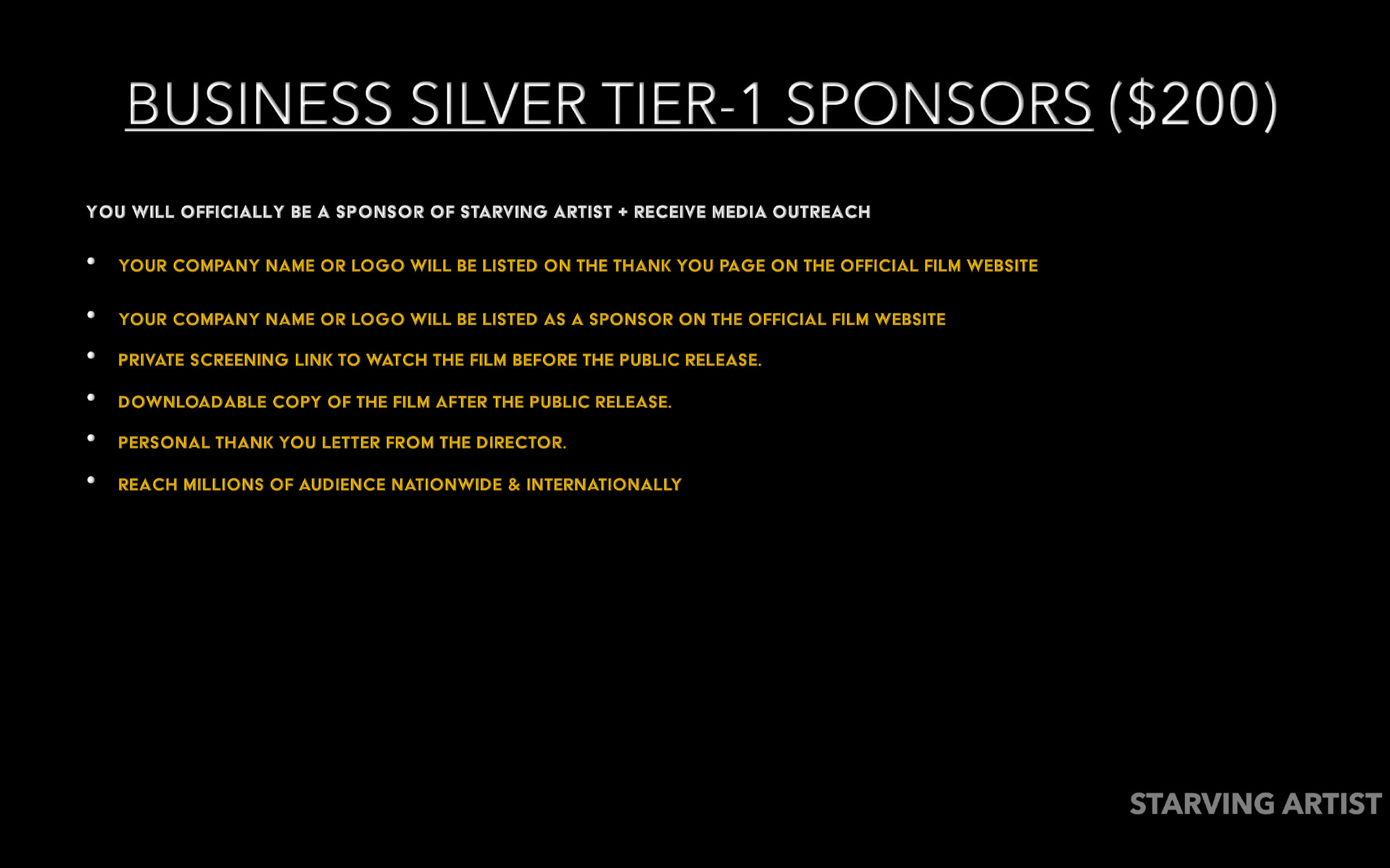 Show your support to STARVING ARTIST today for a great cause while helping bring this exciting project to life.
